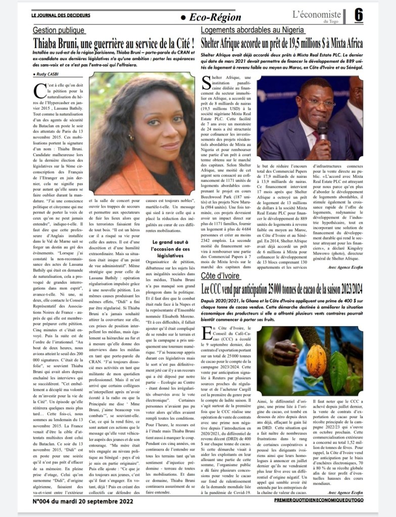 Revue de presse VOTRE TÊTE DE LISTE UEM 2026 Thiaba BRUNI Facebook Huffingtonpost Jeune Afrique BFM TV 20 Minutes Revue de presse internationale